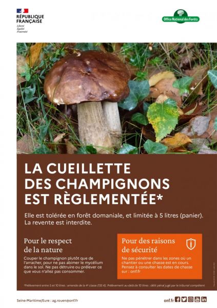 La cueillette de champignons est autorisée par l’Etat en forêt domaniale exclusivement. Pour les autres forêts, il vous faudra une autorisation préalable du propriétaire avant d’effectuer toute cueillette. (Article 547 du Code civil).