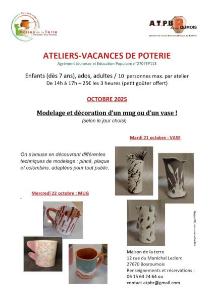 La maison de la Terre, 12 rue du Maréchal Leclerc à Bosroumois vous propose de participer à des ateliers le 21 et 22 octobre prochain.