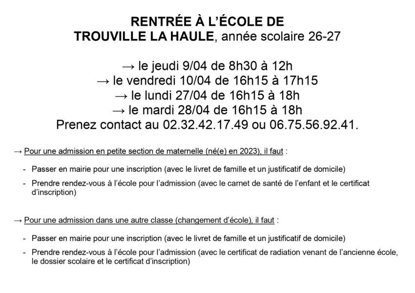 Vous trouverez ci-dessous un bulletin informatif concernant l'inscription pour la rentreé scolaire 2026-2027